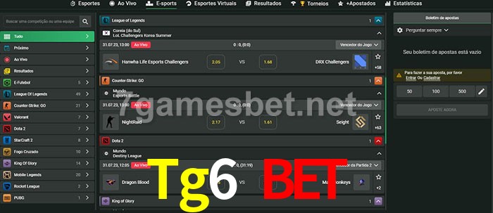 O Tg6 Bet oferece uma grande seleção de opções de apostas em e-sports com probabilidades competitivas